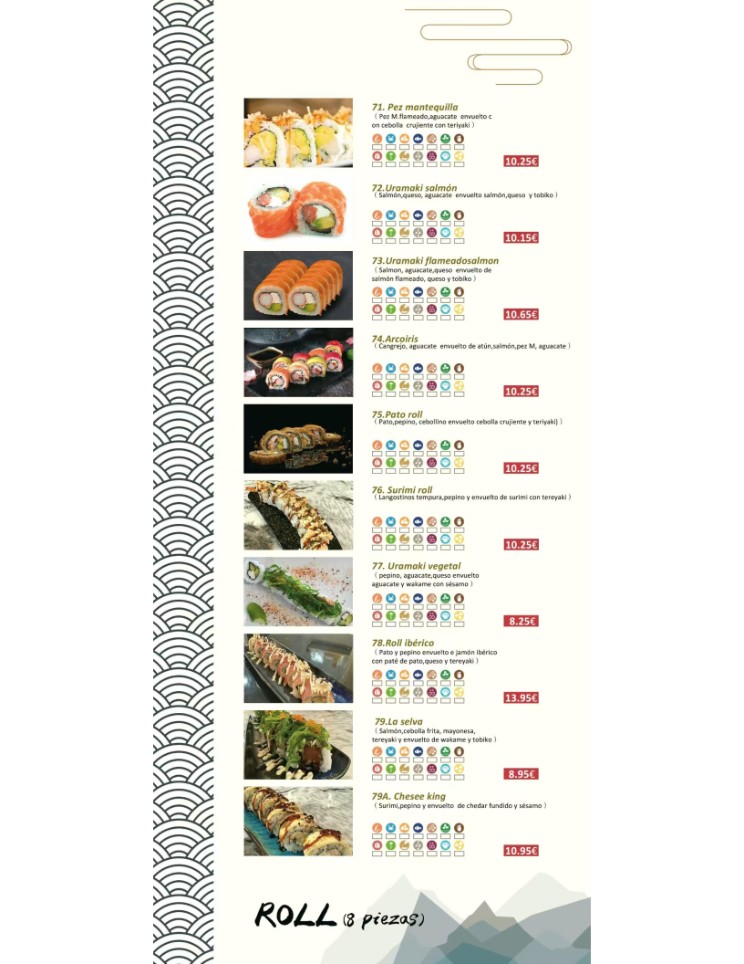 Introducing the menu at Yotsuba Sushi, located in the heart of Alcobendas, Madrid, is a delightful journey into authentic Asian cuisine. This establishment boasts a diverse array of sushi rolls, including the tantalizing Dragon Roll and Salmón Cheese Roll, each meticulously crafted to please the palate. The menu also features exquisite nigiris, like the flame-seared Salmón and the rich Pez Mantequilla, providing an exceptional seafood experience.